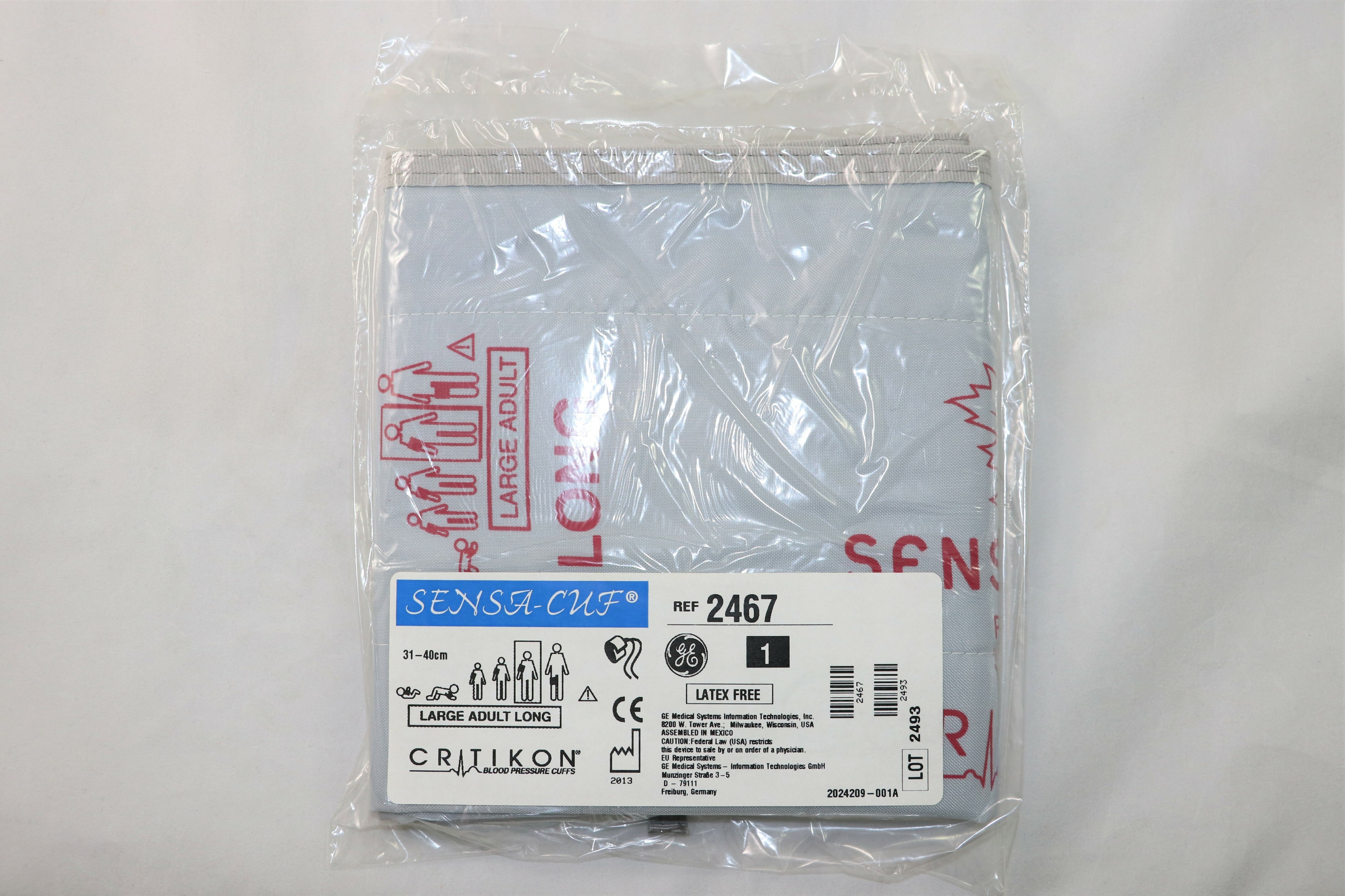 GE Critikon Blood Pressure Cuff SENSA-CUF 2467, Large Adult Long (SINGLE CUFF)