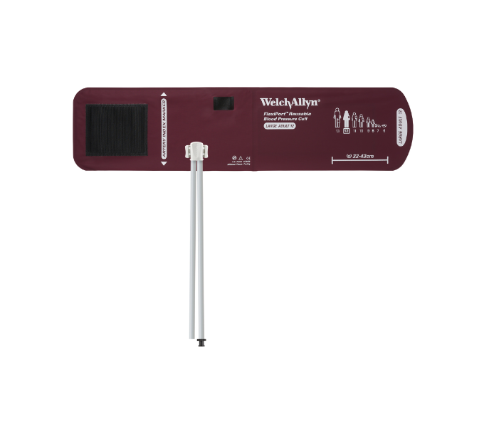 Welch Allyn FlexiPort Blood Pressure Cuff; Size-12 Large Adult, Reusable, 2-Tubes (8.0 and 13.0 in/20.3 and 33.0 cm), Tri-Purpose (#5082-168) Connectors; Cuff Range 32-43 CM