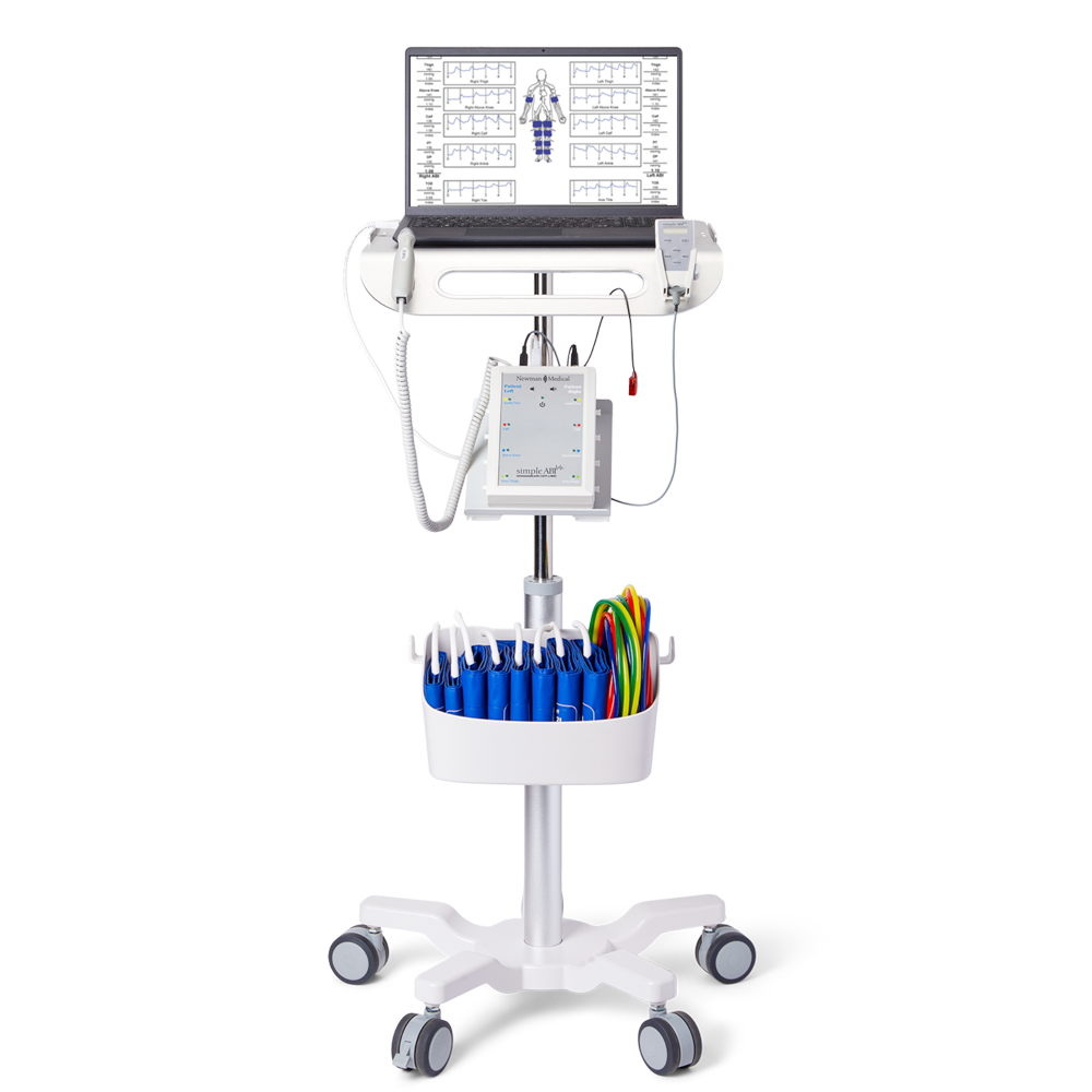 The Newman Medical ABI-500CL ABI System is a PC-based simple ABI system designed to quickly and easily produce results to diagnose the lower extremity peripheral artery. The Newman Medical ABI-500CL ABI System can produce full-page reports with documentation used for reimbursement. It includes a cuff link main control unit that can integrate the 8 port cuff selector, interchangeable Doppler probes, pressure sensors, pump, and control software. The cuff link remote allows the user to step through the exam with a push of a button. It has a large easy to read display of the current cuff pressure and push-button inflation and on-button waveform creation. It has automated cuff deflation to ensure that it provides accurate pressures. The Newman Medical ABI-500CL ABI System comes with a powerful yet simple to use software that was designed to save you time and easily integrate other aspects of the system. It performs automatic index calculations to avoid potential efforts. It can store each exam with a timestamp and customize your report with your logo and information. It can create drop-down editable menus and ICD-10 codes. It has suggested CPT codes and interpretation for the results as well as multiple and selectable formats to store the reports such as PDF, TIFF, CSV, BMP, or JPG. The Newman Medical ABI-500CL ABI System can perform single-level exams for diagnosis obstruction. It can use Doppler or PPG as the pressure sensor (CPT code 93922), and can optionally use DICOM software as well The Newman Medical ABI-500CL ABI System can also perform segmental exams used to determine the level of obstruction (CPT code 93923) The Newman Medical ABI-500CL ABI System can also perform modern, efficient segmental exams that are multi-level and done with PVR. These tests are much faster and easier on the patient and still provide all the information you need to determine the level of occlusion. The Cuff-link includes a built-in Doppler that is sensitive and utilizes interchangeable probes. It will allow you to hear the blood flow quickly and clearly. It comes with a unique magnetic probe holder that won’t crack or break and can gently cradle the probe when it is not being used. The Cufflink speaker is a powerful high-fidelity speaker that has extraordinary smooth and rich responses over a whole range of Doppler sounds. The probes provide the sensitivity and reliability that you would need when performing exams. The Newman Medical ABI-500CL ABI System comes with an 8MHz vascular probe that has a smooth contour design that makes it easy and comfortable to use on your patient. The Newman Medical ABI-500CL ABI System comes with a complete set of specialized vascular cuffs that are soft, washable, and long enough to fully wrap the limb.
