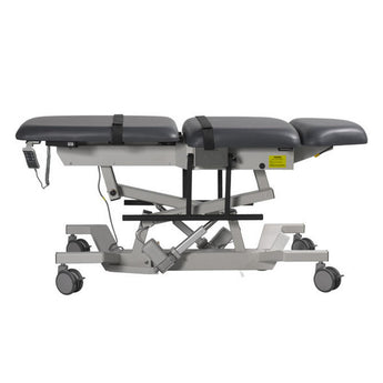 The Econo Ultrasound Table is designed on the same platform as the Ultra Pro with similar features and functions. To make it a more cost-effective alternative it is offered without Trendelenburg positioning or a central floor-locking system. The echo was designed to help prevent musculoskeletal injuries and allow comfortable shoulder, arm, and hand positions while scanning. It can hold up to 500lbs and thus is suitable for bariatric patients. It comes with a drop-down leg section for a chair-like experience. The height range can be down to 23” and can accommodate wheelchair transfers and those with ambulatory difficulties. It has Fowler positioning, 0-80 degrees, and is designed to accommodate natural body extensions and sitting positions without the need to slide or shift. It comes with Naugahyde antimicrobial mattress cover with Advanced BeautyGard to protect against bacteria. It also includes a durable hand control to activate the various table positions to allow seated or standing working positions.
