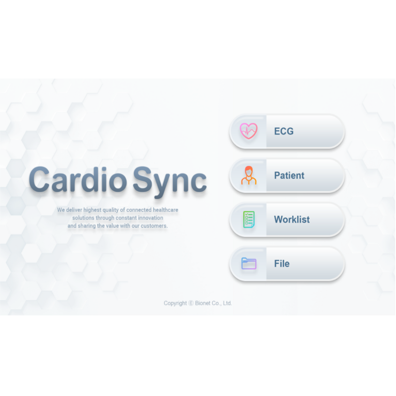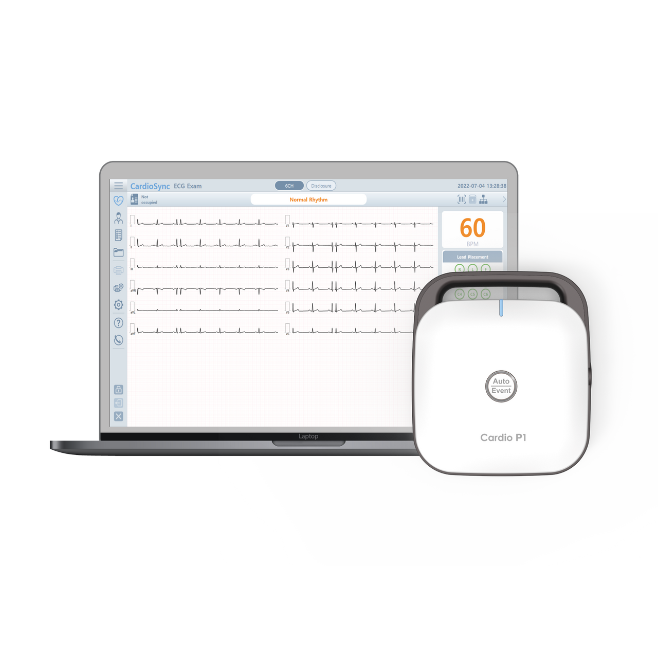 CardioSync Bionet ECG data management software: CardioSync is an ECG data management software program that enables you to interface P1 with Windows-based computers through a direct wired connection. The ECG data from P1 is saved and transferred in Bonet’s proprietary file format (.ecg), JPEG, PDF, XML, MFER, or DICOM, ensuring compatibility with most EMR packages. CardioSync displays real-time ECG data on-screen, instantly performs a real-time arrhythmia detection, and offers diagnostic aid. In addition, CardioSync can eliminate the need for costly thermal paper by printing a variety of comprehensive premium report formats of Text, Guide, Vector, and ST-MAP as a standard feature for further interpretive data review.