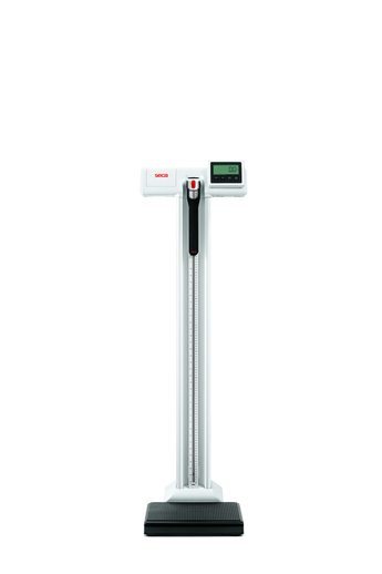 The Seca 777 digital column scale with eye-level display is the medical-grade solution for measuring and weighing. It features a tilt-proof full metal platform and robust single piece column, that won’t give way when pushing the keypad. All patients (especially ones affected by obesity) will feel secure on the platform even when stepping on the edge of the base. The scale is easy to move by staff due to the large rubber coated castors and a wide wheelbase.
