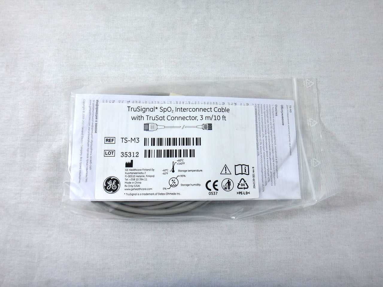 GE TS-M3 TruSignal SpO2 Interconnect Cable with TruSat Connector, 3m/10ft