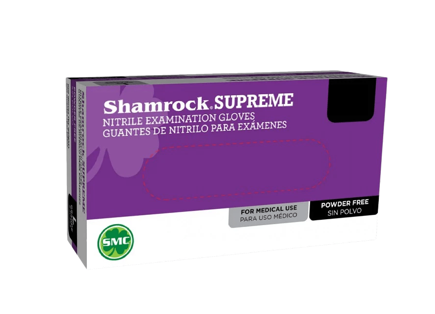 Shamrock Gloves Supreme Blue Exam Powder Free Nitrile Gloves (30350 Series – 3.5g, 100 gloves per box). Sizes Available: Small, Medium, Large, Extra Large