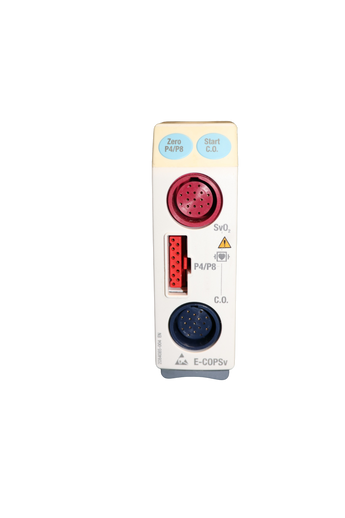 This Module measures C.O. Cardiac Output, IBP Invasive Blood Pressure and provides mixed venous oxygen satureation SVO2. It connects to GE and Datex Ohmeda Monitors including S/5 and FM Series.