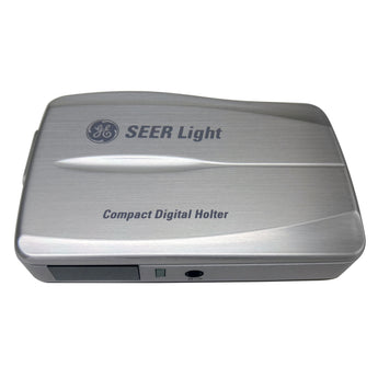 The GE Seer Light Holter recorder is a digital recorder that can record up to 24 hours of continuous information capturing. It is a lightweight compact easy to use recorder approximately the size of a business card, the Holter features 2 or 3 channels of diagnostic quality full disclosure EKG and demographic patient data. It includes an onboard 32MB of flash memory and solid-state technology for reliability with no moving parts. Its sampling rate is 128 samples per second, providing you detailed information for you to provide the best patient care.